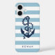 Nautical Blue Stripe & Navy Anchor Personalised Case-Mate iPhone Case