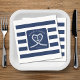 Nautical blue and white striped wedding napkins. Great for a Navy (military) or lake house wedding. Design features a heart shaped rope with anchor and couple initials in the middle. Personalise it with your wedding details.