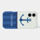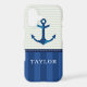 Nautical Blue Stripes Pattern Anchor Custom Name