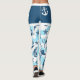 Nautical Blue White Anchor Sailboat Sea Life Beach Leggings
