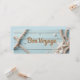 A fun greeting card with a nautical design of ropes, starfish and sand on a blue wooden backdrop.