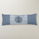 Nautical theme, blue and white striped, modern body pillow- Centred is a faux metallic, silver ship anchor in a blue circle. With nautical blue and white striped pattern in the centre and matching nautical blue on both ends. Same on back. Trendy decor for the summer or for a beach vacation house. Unique nautical wedding gift or summer housewarming gift. We have matching anchor striped decor, as well as lots of nautical theme and summer home decor in our Zazzle.com/angela65 shop.