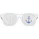 White Sunglasses with Single Blue Nautical Boat Anchor on one side. Makes for a fun party favour for any party or event. Ships Ahoy! Mix and match entire Nautical Collection by TMCdesigns.
