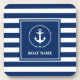 Nautical Boat Name Anchor Navy Blue Striped Coaster
