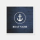 Nautical Boat Name Anchor Rope Navy Blue Wood Paper Napkins