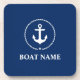 Nautical Boat Name Anchor Rope Navy Blue Coaster
