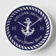Nautical Boat Name Anchor Rope Navy Blue and White Welcome Aboard Outdoor Wall Clock