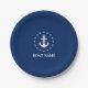 Nautical Boat Name Anchor Stars Navy Blue Paper Plate