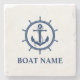 Nautical Boat Name Anchor Wheel Marble Stone Coaster