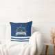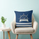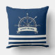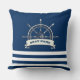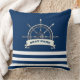 Nautical, Boat Wheel, Navy Blue Stripes Cushion