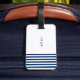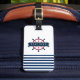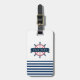 Nautical Boat Wheel, Navy Blue Stripes Luggage Tag