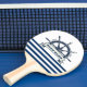 Nautical Boat Wheel, Navy Blue White Stripes Ping Pong Paddle