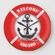 A fun nautical themed emergency life buoy design with a ships anchor and welcome aboard text perfect for sailors on board their boat or yacht.