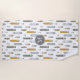 This bird's eye view nautical-themed beach towel can be customised with any background colour and features a pattern of varied size seafaring vessels on a white background with custom monogram on a grey circle pendant - the pattern includes 3 cargo ships, a sailboat, a cruise ship, a paddle wheel tour boat, a yacht and a fishing boat - On the River © katz_d_zynes 2019