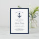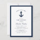 The nautical anchor design not only adds a timeless aesthetic to this baby shower invitation. Featuring your pirate saying, and a navy blue anchor and rope, personalise to create a unique nautical invitation for your upcoming baby shower.