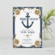 Nautical Bridal Shower Anchor Blue Gold Floral Invitation