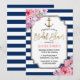 Nautical Bridal Shower Pink Floral Navy Stripes Invitation
