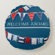 Nautical Bunting design with sailboats, anchors, diffuse lettering and stripes in the colours of red, white and blue, typical of nautical and coastal livin and maritime topics.