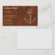 Nautical boating business cards with gold boat anchor symbol and simulated wood background with text layout you can customise online. Excellent for boating, shipping, fishing clubs, deep sea fishing, or boat captain.