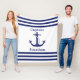 Nautical Captain Blue Anchor Add Name Fleece Blanket