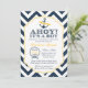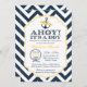 Ahoy! It's a Boy. Cute nautical boy baby shower invitation with large chevron pattern, and sailing elements. Anchor and nautical rope. Blue and bold yellow, make a statement with this design!!