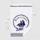 Nautical coastal personalised name Sailboat Navy Blue and White Golf towels Design by Sandy Closs