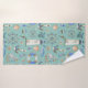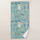 Bath towels with a teal background with watercolor painted coastal boating theme items pattern.