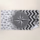 Nautical Compass Rose Anchors Black White Chevron Beach Towel