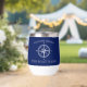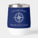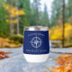 This nautical thermal wine tumbler makes a great gift for boat owners, captains, first mates, and dockside hosts who love entertaining on the water. It features a classic compass rose on a navy blue background, and customizable boat name.