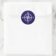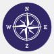 Nautical compass star custom colour round stickers. Make your own stickers. Navy blue and white maritime icon with bold text. North East South West.