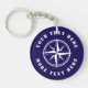 Nautical compass star custom keychain. Make your own keychain for sailor, boat captain, dad, friend, skipper, boss, co worker etc. Navy blue and white maritime icon with bold text.