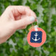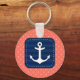 Nautical Coral Polka Dot Pattern Navy Blue Anchor Key Ring