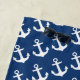 Personalise this stylish modern nautical beach towel with your name, featuring a white anchor pattern on a navy blue background. The pattern can be resized so the anchors can be smaller or larger, so is customisable the background colour and the colour of text.