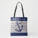 Nautical Dark Blue Anchors On Wooden Pattern Tote Bag