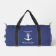 Nautical Dark Blue White Anchor Boat Name Captain Duffle Bag