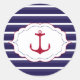 Nautical Dark Blue White Stripes Red Anchor Classic Round Sticker