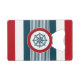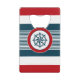 Nautical design with compass decoration in round shape on blue, red and white striped background