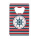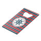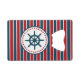 Nautical design with sailing wheel decoration in round shape with stars on red, blue and white striped background
