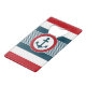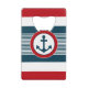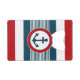 Nautical design with anchor decoration in round shape on blue, red and white striped background