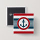 Nautical design with anchor decoration in round shape on blue, red and white striped background