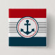 Nautical design with anchor decoration in round shape on blue, red, grey and white striped background