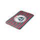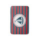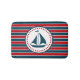 Nautical design with sailing boat decoration in round shape with stars on red, blue and white striped background