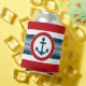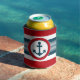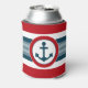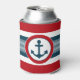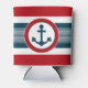 Nautical design with anchor decoration in round shape on blue, red and white striped background