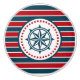Nautical design with compass decoration in round shape with stars on red, blue and white striped background