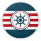 Nautical design with sailing wheel decoration in round shape with stars on red, blue and white striped background