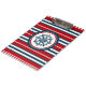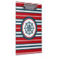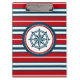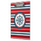 Nautical design with compass decoration in round shape on red, blue and white striped background