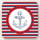 Nautical design with hand drawn anchor decoration on blue, red and white striped background