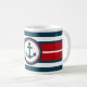 Nautical design with anchor decoration in round shape on red, blue and white striped background
