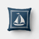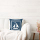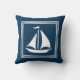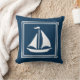 Nautical themed design with sailing boat decoration in striped squares on blue background
