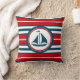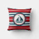 Nautical design with sailing boat decoration in round shape on red, blue and white striped background